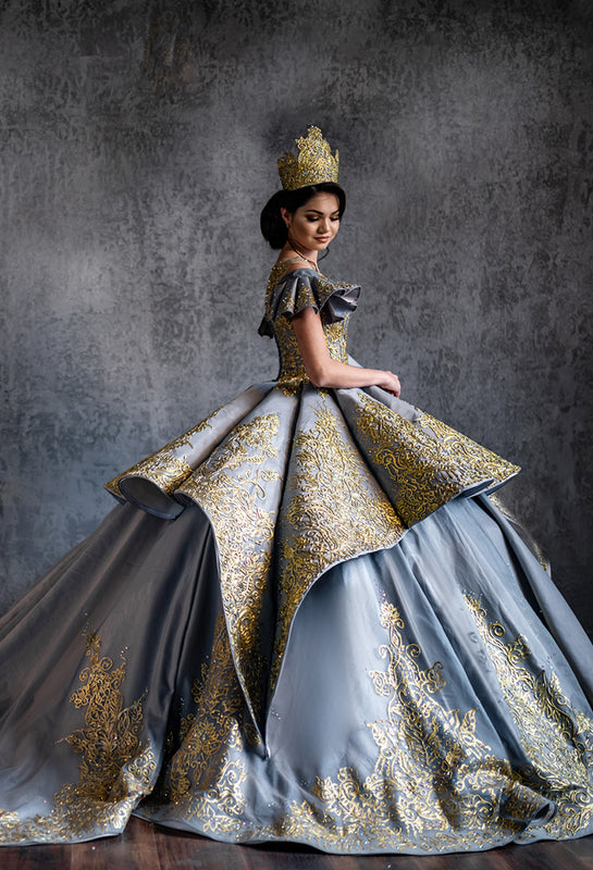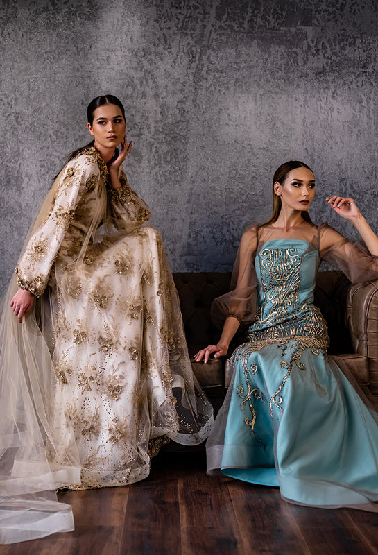 EVENING GOWN WITH FLOOR-LENGTH CAPE